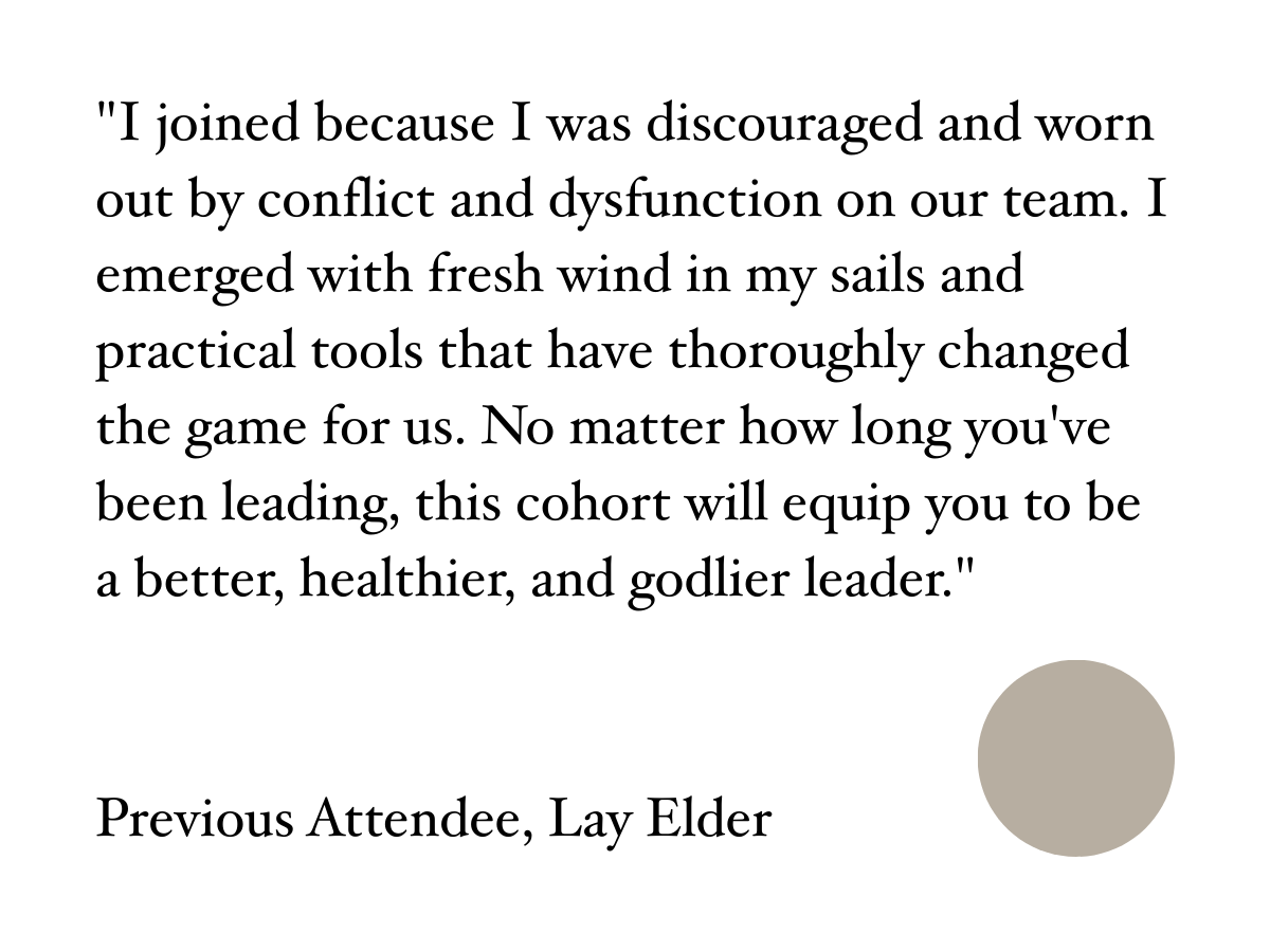 This cohort is especially helpful for lead pastors who already serve with a plurality of elders and want to mature that team in health, clarity, and shared practice.